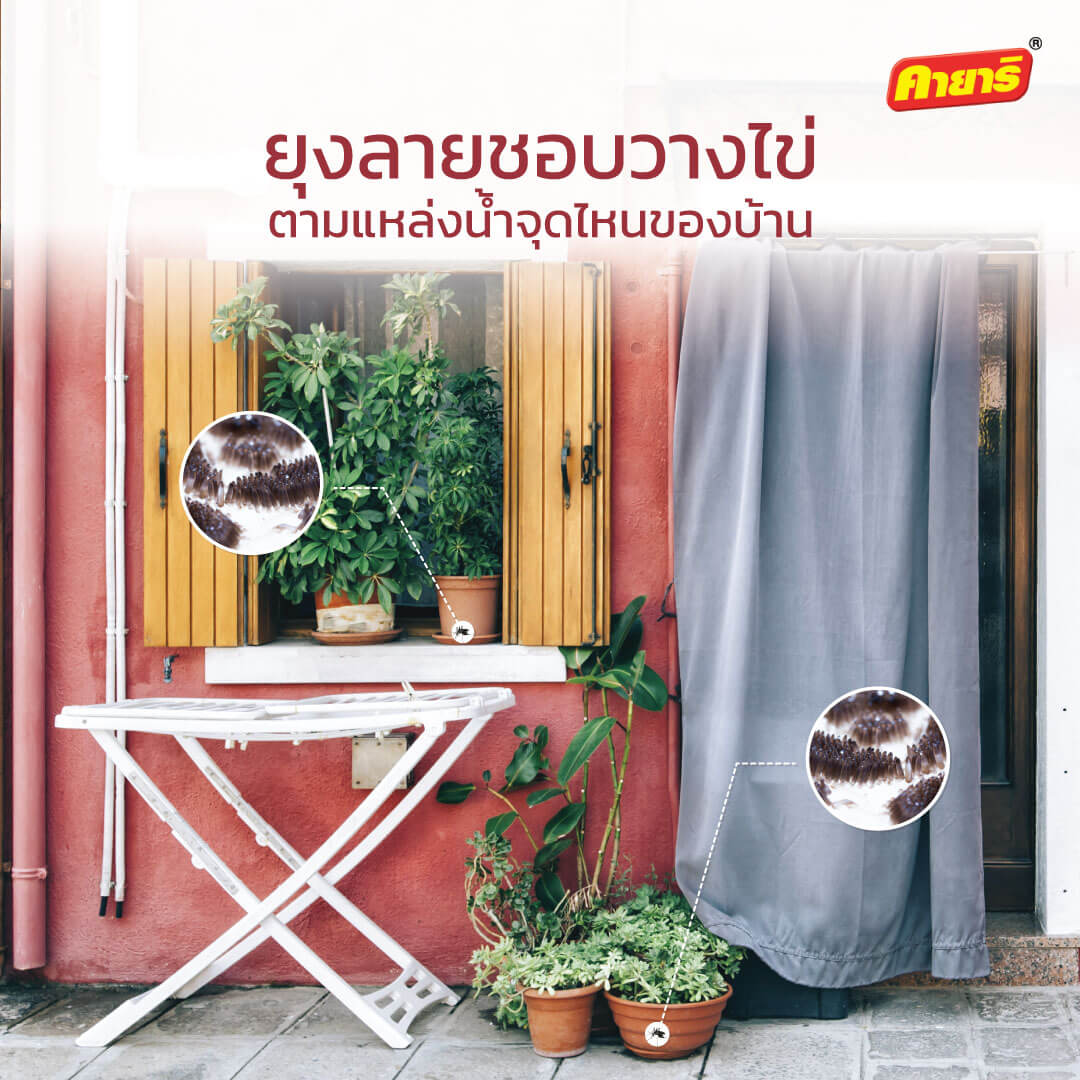 ดังนั้นจะต้องคอยตรวจสอบน้ำนิ่งที่เป็นจุดกำเนิดของยุงตัวร้ายและทำลายวงจรการแพร่พันธุ์ของยุงลายตั้งแต่เริ่มต้น เพื่อหยุดยั้งการกำเนิดของยุงเพื่อความสุขของทุกคนในบ้าน